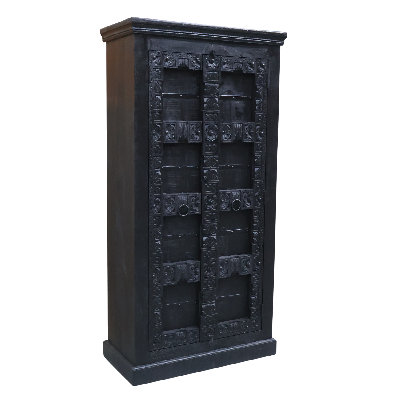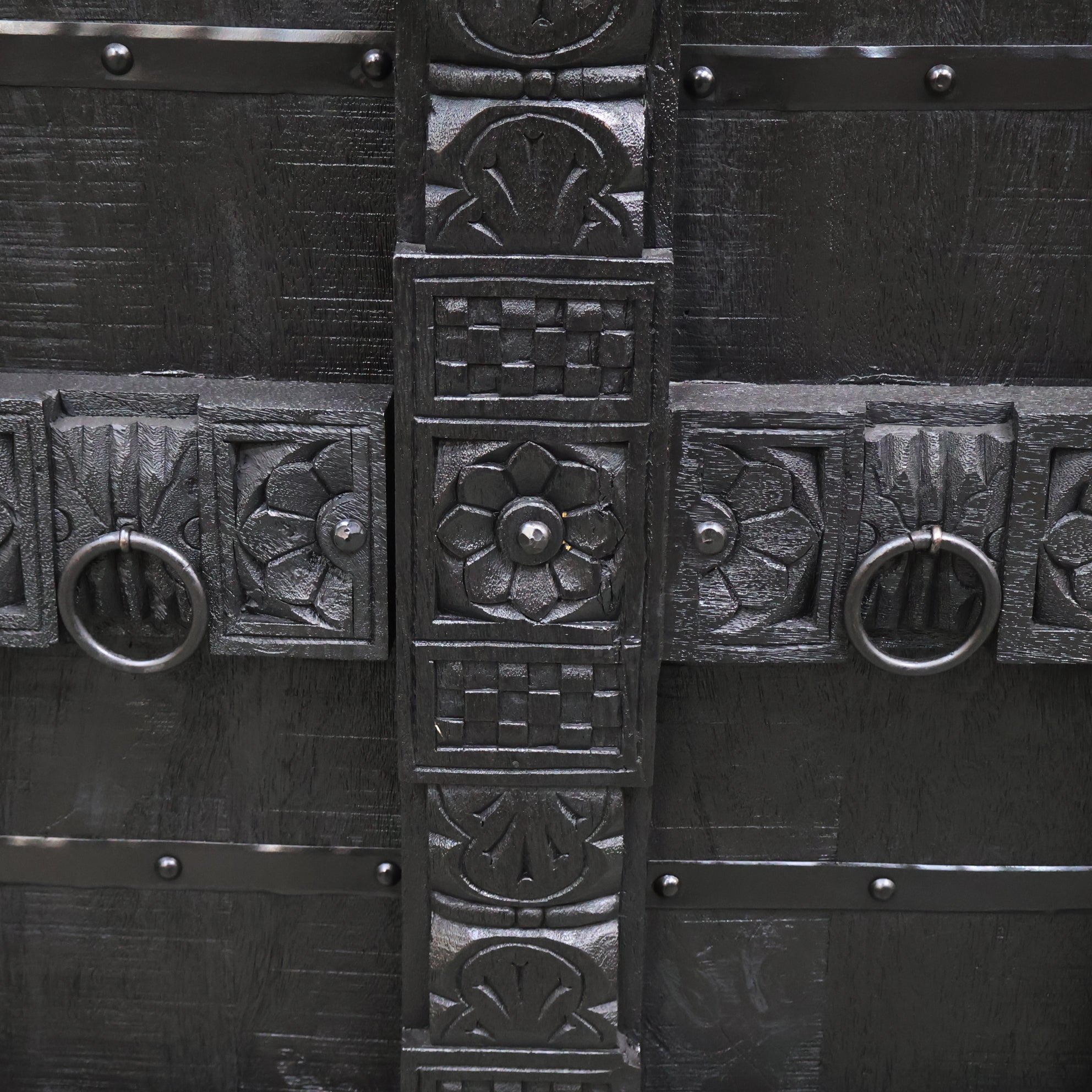 Cette armoire de rangement en bois de manguier massif et bois recyclé est un meuble de style indien. Une armoire noir au style vieilli pour un intérieur vraiment personnel et unique.