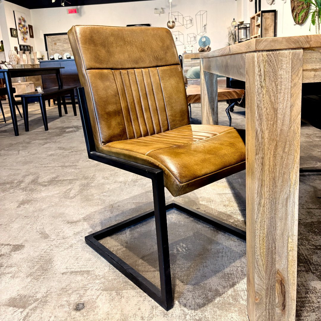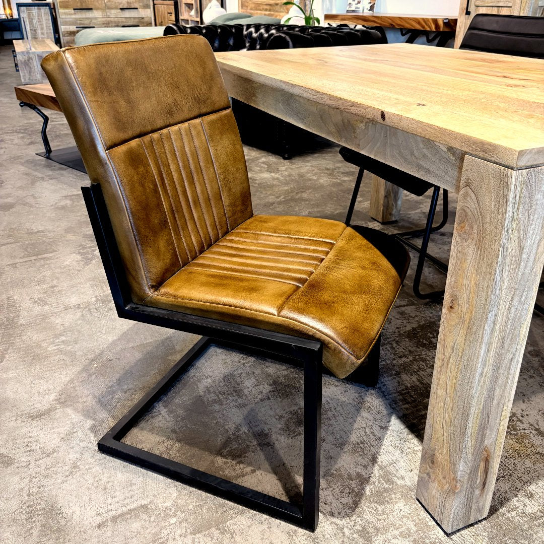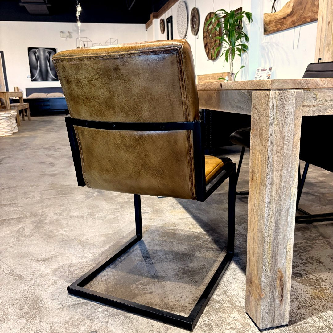Avec son design contemporain et industriel, la chaise Newton en cuir marron est idéale pour donner du caractère à votre salle à manger. Son assise rembourrée et son dossier ergonomique, revêtus de cuir véritable marron patiné, offrent un confort durable et un style authentique.