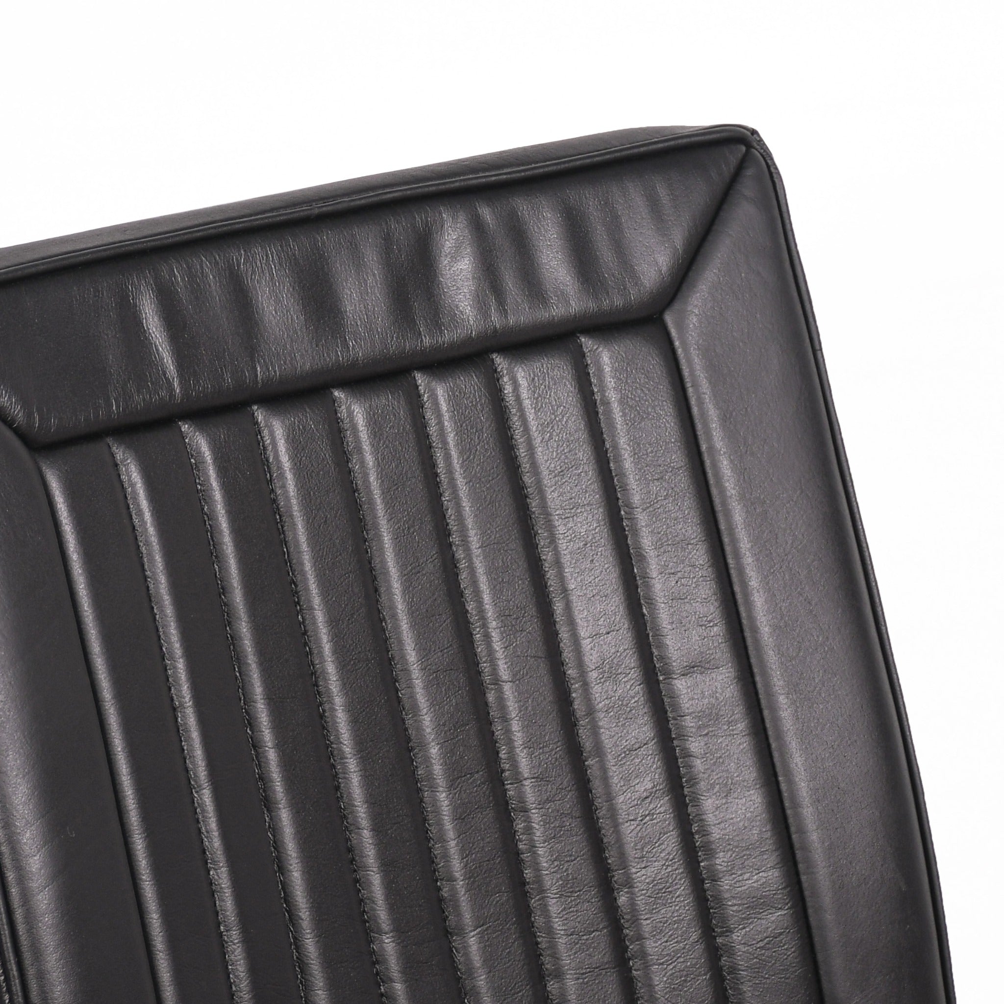 Le revêtement en cuir véritable noir offre une sensation premium, durable et agréable au toucher. Les coutures verticales apportent une texture raffinée qui souligne son caractère.