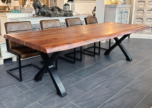 Retrouvez l'authenticité du bois à travers nos modèles table à manger en bois d'acacia massif.Leur particularité? Un plateau à l'état brut qui fait la part belle aux aspérités du bois. Fixée sur deux pieds modernes en métal à choisir parmis notre collection de piétements, votre table à manger conjuguera les styles avec goût.