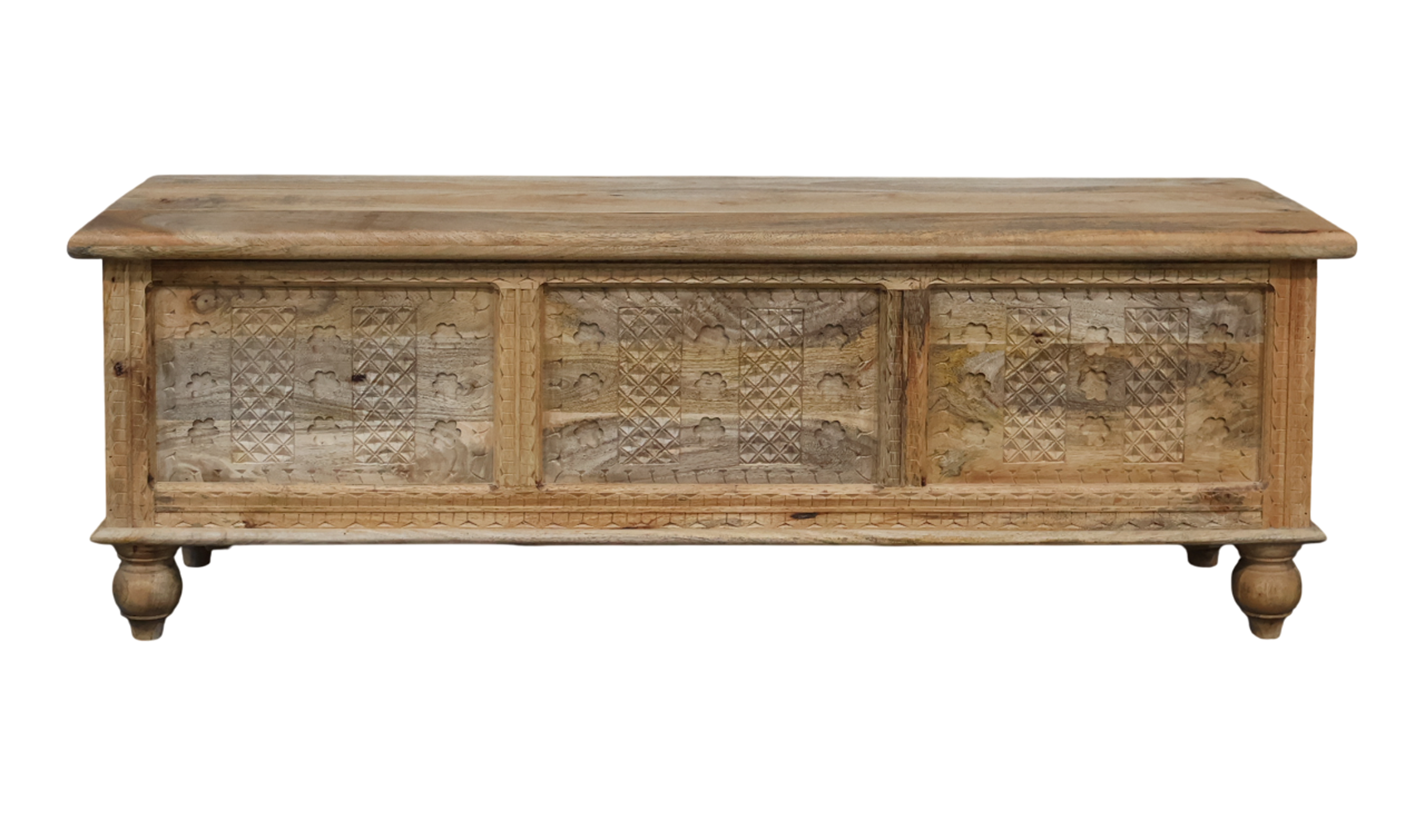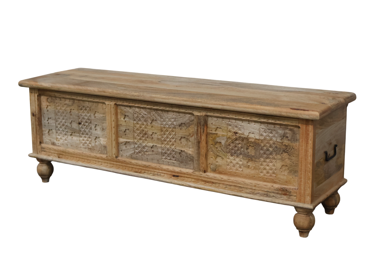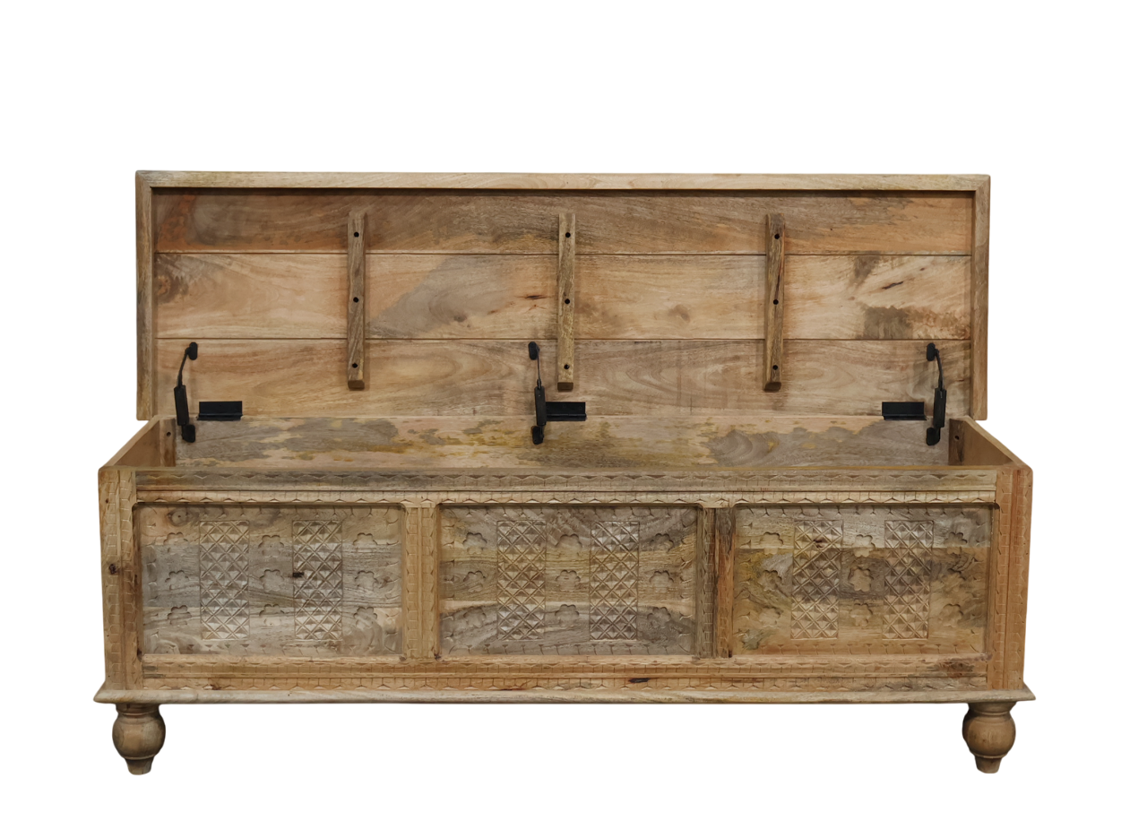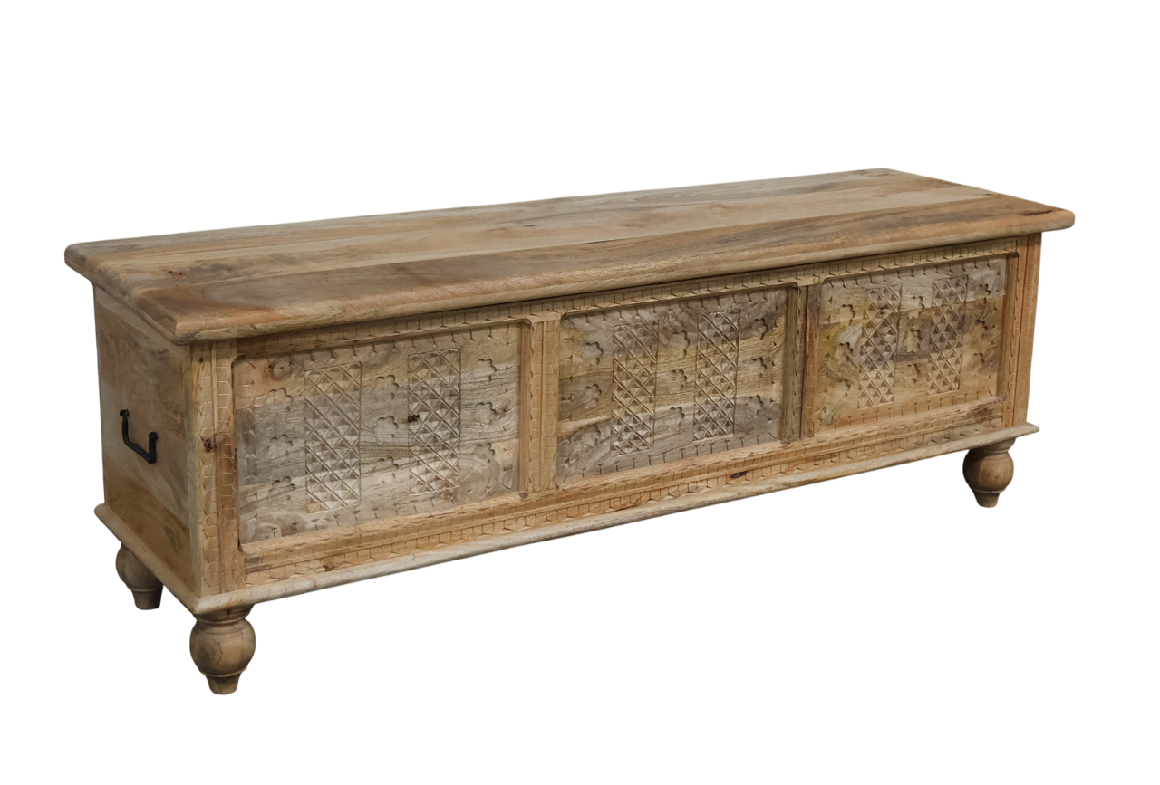 Découvrez cet élégant coffre Diamond de style indien. Sa structure en bois de manguier naturel cérusé vert lui confère toute son authenticité. Il s'harmonisera parfaitement dans une ambiance nature.