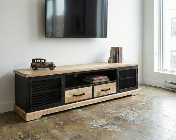 Chaque pièce associe le manguier massif texturé, riche en nuances et en caractère, à une structure en métal noir aux lignes franches. Aucun placage, aucun artifice : la matière s’exprime pleinement.