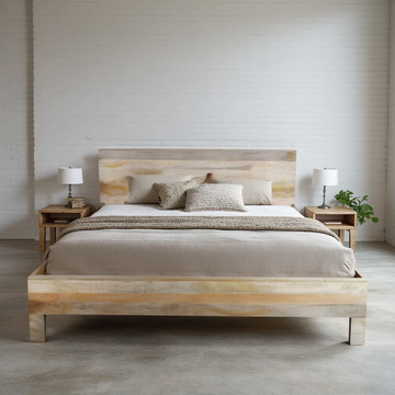 Transformez votre chambre en un espace élégant avec le cadre de lit en bois Kerala. Son design épuré et sa couleur naturelle en bois massif de manguier apporteront sophistication et style à votre décor.