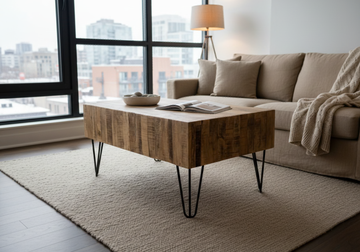 Une table basse sobre et efficace, conçue pour durer et traverser les styles.