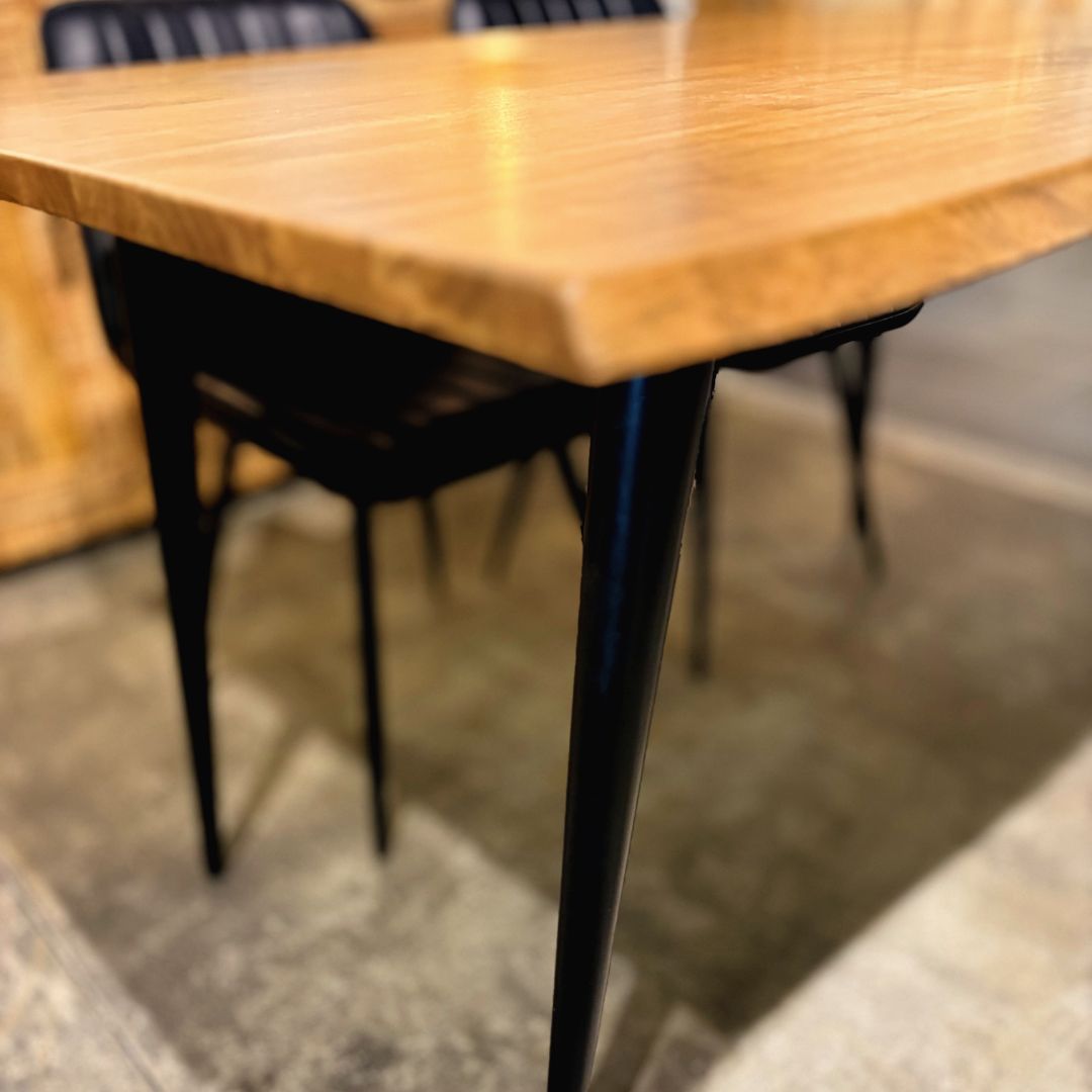 Associée à des pieds fuselés en métal noir, cette table marie parfaitement style industriel et chaleur naturelle, s’adaptant aussi bien aux intérieurs contemporains qu’aux espaces plus classiques.