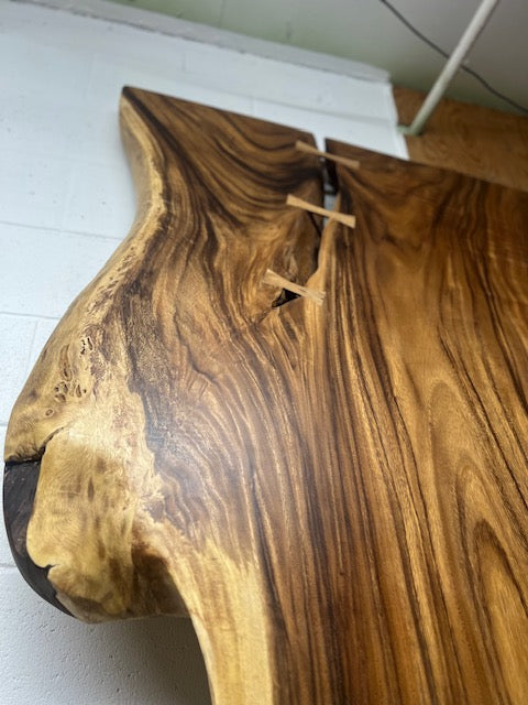 Chaque plateau est une pièce unique, taillée dans un bois massif de Suar au veinage spectaculaire.