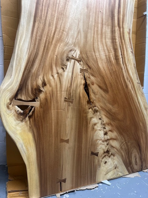 Chaque plateau est une pièce unique, taillée dans un bois massif de Suar au veinage spectaculaire.