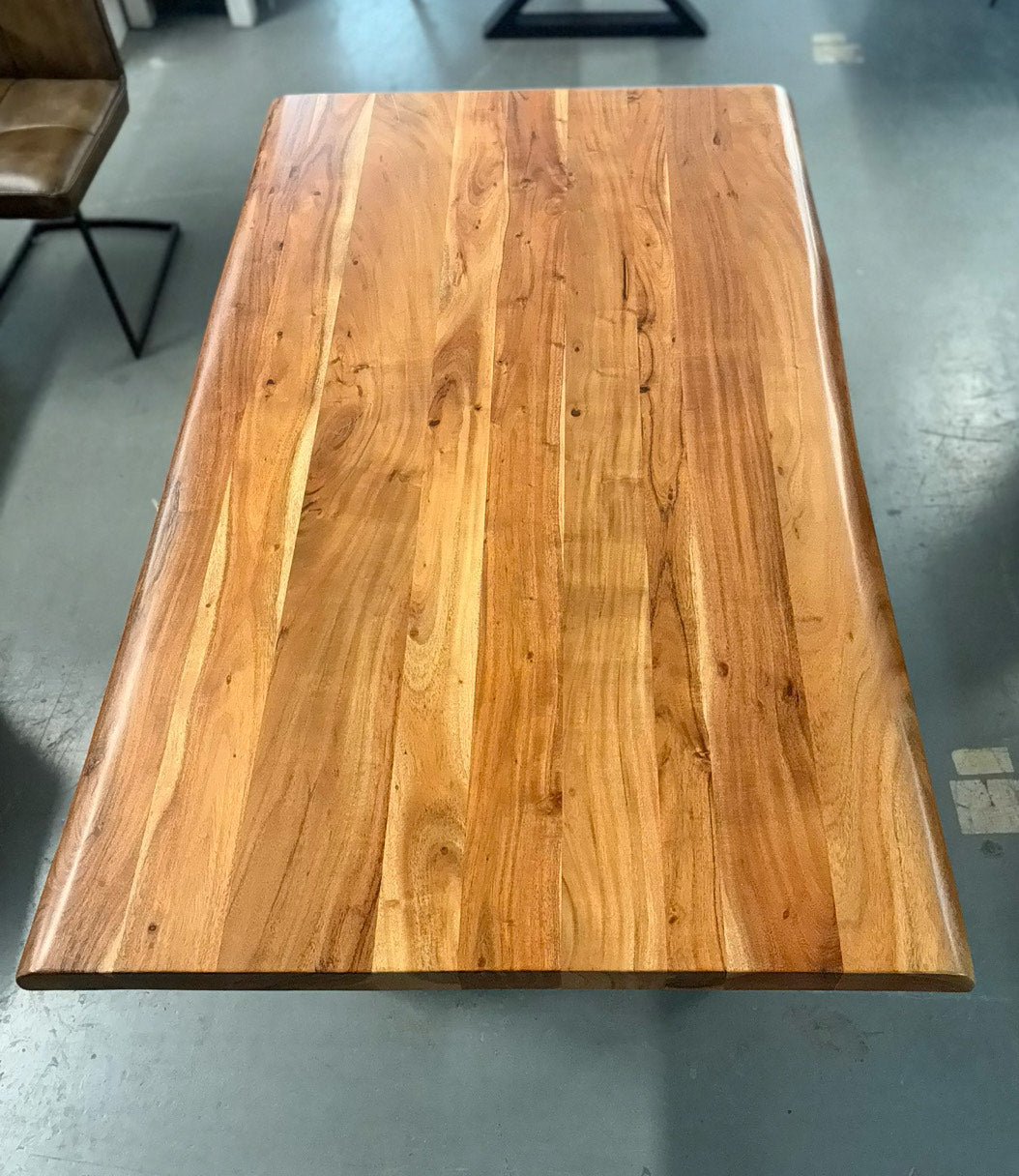 Table à dîner en acacia massif vendue en liquidation — une pièce unique issue de retours clients, fins de série ou modèles d’exposition.