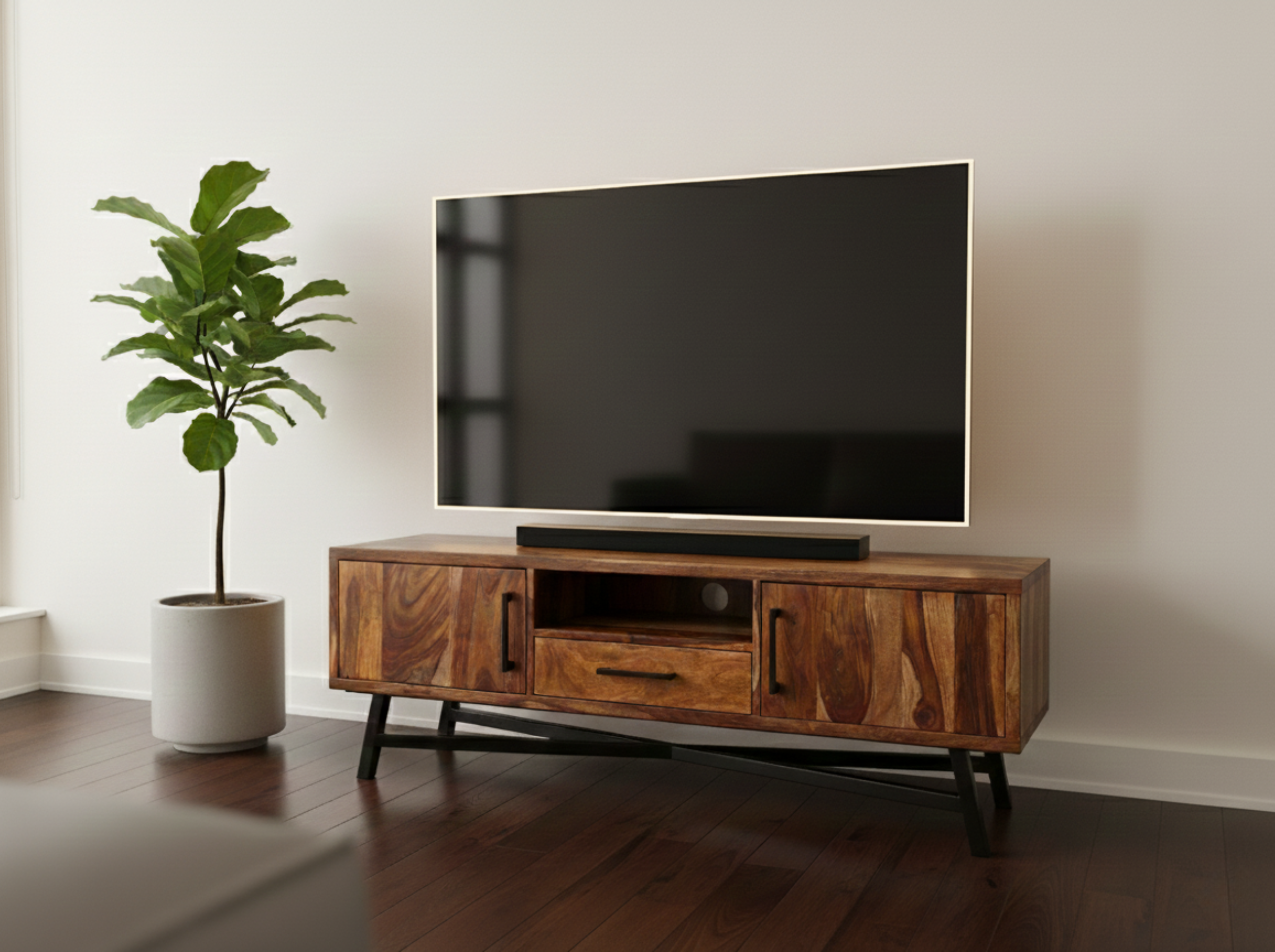 Made from precious Indian rosewood, this video unit offers a modern style that will add a warm atmosphere to your living room.