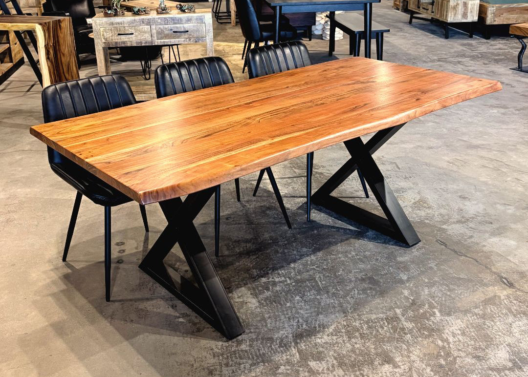 Table à dîner acacia 1.5" bord naturel champagne base X