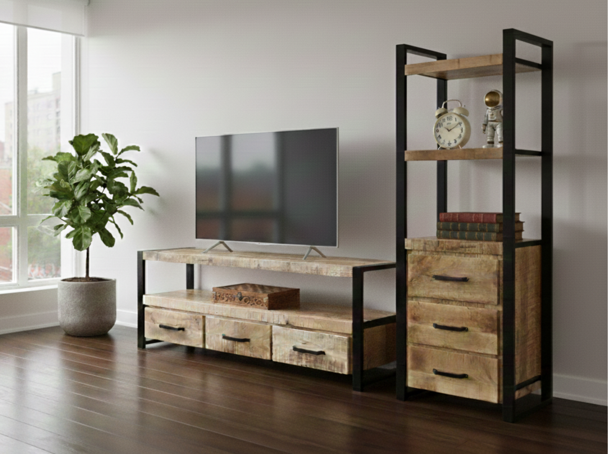 芒果木和黑色金属制成的 Factory 搁板兼具实用性和美观性,将很快成为您室内装饰的必备品。