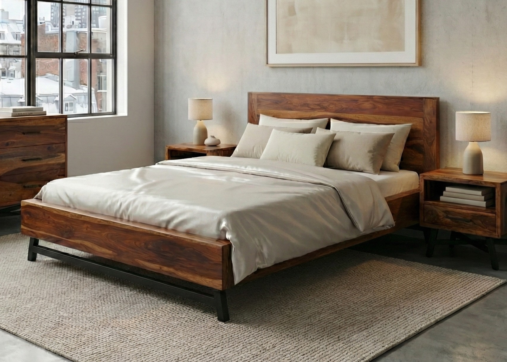 Loft 床架具有现代风格,其充满特色的实心 Sheesham 木材与黑钢底座相结合。其永恒的简约线条使其成为一款经得起时间和时尚考验的床。 Loft 系列的高端饰面使这些家具独一无二。